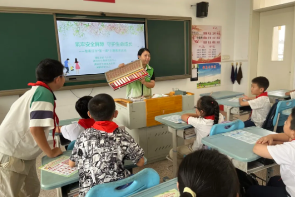 “同学们,知道这个看似可爱的‘彩色糖果’里藏着什么吗?它可能是伪装的新型毒品!”9月1日上午,溧阳市前马小学5年级一班的教室里,竹箦镇禁毒社工高高举起仿真毒品模型,“这个是鸦片,林则徐在虎门销毁的就是它”,引来台下30余名师生的阵阵惊呼——这是竹箦镇综治中心联合竹箦派出所为孩子们送上的秋季“开学第一课”。
