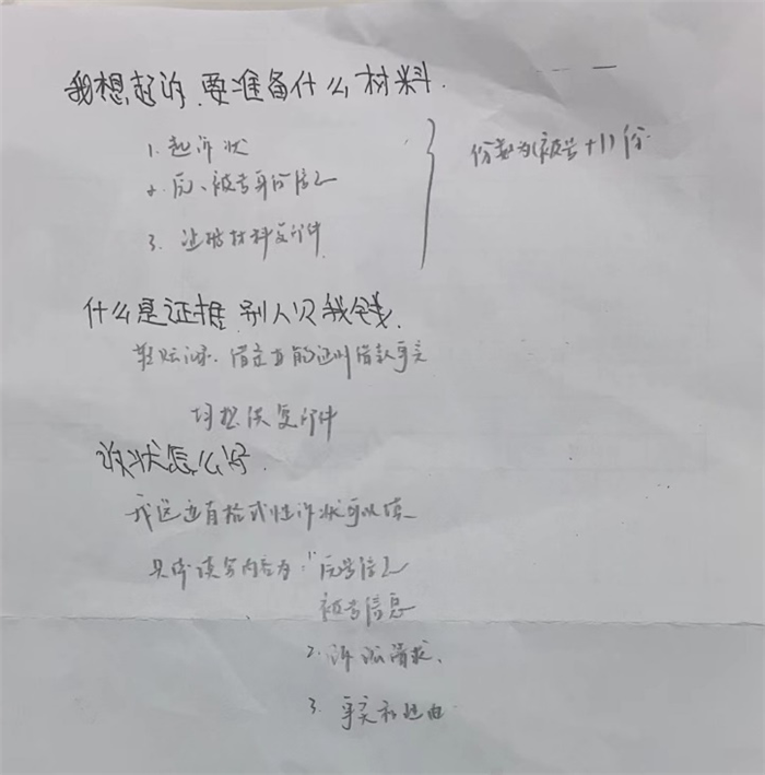 这张纸条记录了立案前法官和聋哑当事人交流的过程。钟楼法院立案庭为老弱病残孕等特殊群体开辟“绿色通道”,增强群众的司法获得感。一、诉讼辅导全流程。人工服务专人引导,自助服务设备齐全。二、诉前调解全覆盖。通过诉前分流推动源头化解。三、诉讼服务全方位。走进一扇门,事项全办成。今年以来,接待老弱病残孕等特殊群体当事人700余人次。