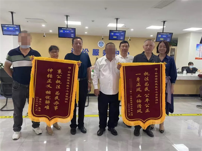 这是一面来自40多位产权商铺业主共同赠送的锦旗。王某等多名产权商铺业主因承租人拖欠租金,双方产生纠纷。钟楼法院采用“示范性诉讼”机制,成为“四两”个案拨动“千斤”量案的典型。一、选定首案定尺度。吃透案情定焦点,明晰思路作裁判。二、简化类案加速度。同案同判公开透明,高效化解定分止争。三、集中化解显温度。合理提供诉讼预期,有序引导诉前调解。2022年,钟楼法院采用示范性诉讼,化解了涉及教育培训、房屋买卖、房屋租赁等纠纷近千件。