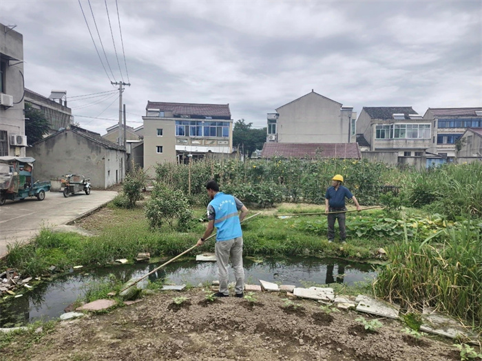 一大早,庄家社区网格员吴佩锦就来到了庄家社区网格一中的大吕家村进行巡查。作为网格一的“巡村人”,城乡环境大整治工作是他现在每天的工作之一。网格群里村民反映的“池塘变绿”消息,像根细针似的扎在他心上。“小吴来了,快看看这池子!”刚到池塘边,村民吕大爷就迎了上来。“太阳一晒,这藻长得比草还疯,傍晚散步都绕着走。”吕大爷无奈地摇摇头。原来正值七月暑期,池塘在高温和阳光的“催化”下,几天功夫便长满了浮萍与水藻,既遮蔽水体,又影响生态。吴佩锦立刻决定先处理掉池塘表面覆盖水藻,他手持长柄网兜,立刻开始了水草的打捞作业。每一网都能捞起一整片水藻。随着大片浮萍被捞上岸,水面逐渐泛起波光,池塘也重现了往日的清澈。为了防止浮萍水草再度泛滥,庄家社区在进行讨论后,决定对大吕家村的池塘进行水底的人工清淤工作,这样不仅能从根上遏制了浮萍与水草的的生长,也能使水塘水质得到改善,方便村民的生活。看着工人在池塘作业,吴佩锦又拿起网兜,把清淤泛起的零散水藻捞干净。如今,大吕家村的池塘成了吴佩锦巡查的“固定打卡点”,常常看到他会蹲在田埂上,看水里有没有新冒头的绿藻。