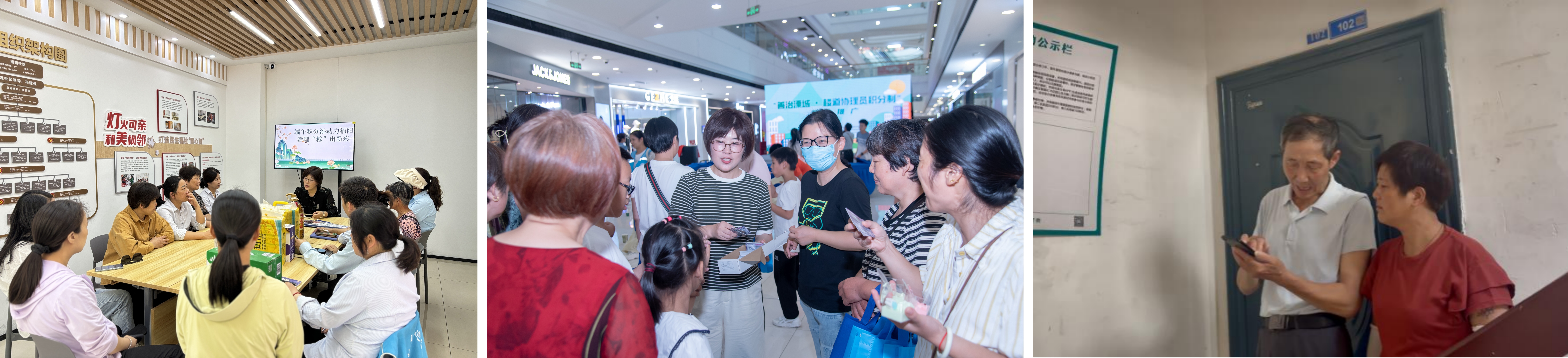 积分制精准匹配不同群体需求,让参与变得“各得其所”。60岁的退休工人洪建波最初因“积分换服务”尝试成为协理员,通过调解邻里空调滴水纠纷、组织楼道大扫除等攒下积分,兑换了老年大学剪纸课,不仅摆脱了退休后的平淡生活,更因贴心服务赢得“洪管家”的美誉,在发挥余热中收获强烈成就感;35岁的全职妈妈陈姐则借助积分兑换到亲子早教课和手工编织培训,既解决了育儿需求,还掌握了新技能,更带动其他宝妈共同参与;30岁的“996”上班族葛纪韬摸索出“碎片化赚分”技巧,周末买菜时检查楼道照明、通勤路上上报飞线充电,甚至通过“协理员APP”抢单完成“防台风竹节草”等短时任务,用零散时间攒下的积分兑换了孩子的暑托班课程,实现了家庭需求与社区参与的双赢。