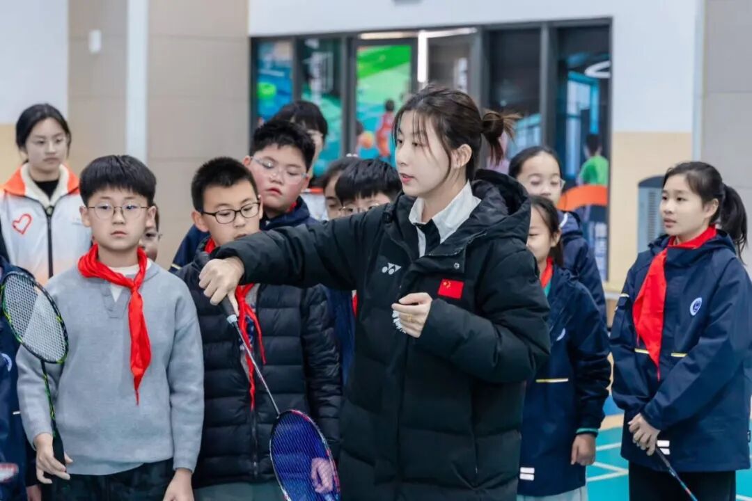 仪式结束后,与会人员共同参加了“伙伴计划——与冠军同行”运动大讲堂首场活动,常州大学团委创新实践部部长、江苏省羽毛球协会副秘书长卞碧莲指导青少年进行羽毛球运动体验。
