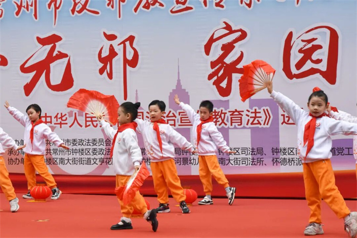 活动伴随着“红日在东方,其大道满霞光”的歌声,由钟楼区翰林河景幼儿园孩子们表演的舞蹈《万疆》拉开了的帷幕。诙谐幽默的情景剧《天下无邪》直击主题,孩子们通过生动的故事演绎,形象地揭示了邪教组织欺世盗名、骗财害命的丑恶行径,让观众在笑声中认清邪教危害。常州机电学院反邪志愿者声情并茂的朗诵《回归》,呼唤人们远离愚昧,追求真理,在法律的庇护下,感受家的温暖与珍贵。幼儿舞蹈《觉醒》以艺术语言传递家国情怀和法治信念。社区“法律明白人”一首《双脚踏上幸福路》和幼儿园老师们《和谐大家园》的歌舞,生动演绎了社区邻里和睦、家园美好的氛围。由歌手康婵玉创作并演唱的钟楼区阳光关爱之家主题曲《人间处处充满阳光》,再一次唱响了崇尚科学、反对邪教的主旋律。一个个精彩的节目表演,使居民在轻松愉快的氛围中接受了深刻的教育。