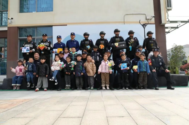 活动尾声,孩子们将亲手制作的手工花、安全主题画作送给民警,用稚嫩的方式表达敬意,并合影留念,定格下这场春日警营之约的美好瞬间。